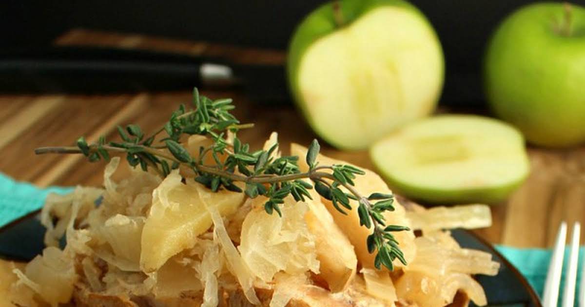 Crock pot pork and sauerkraut features tender pork loin slowly cooking in tangy sauerkraut and seasonings in this classic german new year's meal. Spoon over the pork and sausage and tuck a bay. Monitor nutrition info to help meet your health goals. Savory chops are cooked in a great sauce filled with fresh apples spiked with bourbon. The sharpness of sauerkraut complements the richness of the pork.